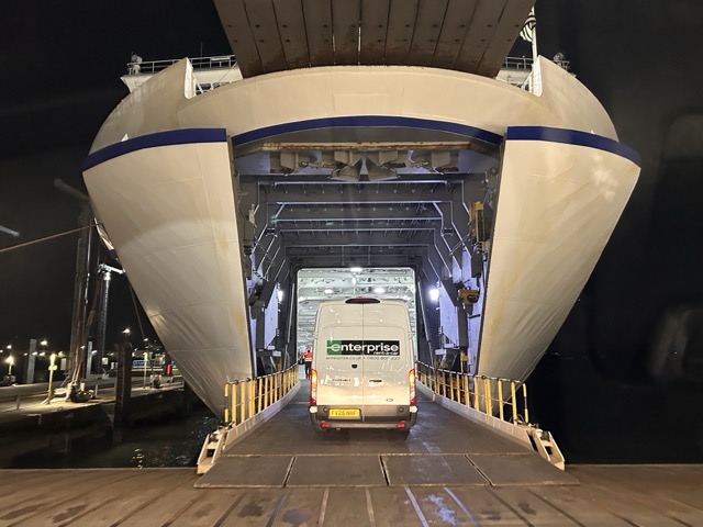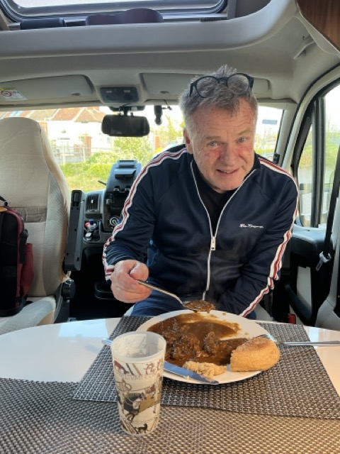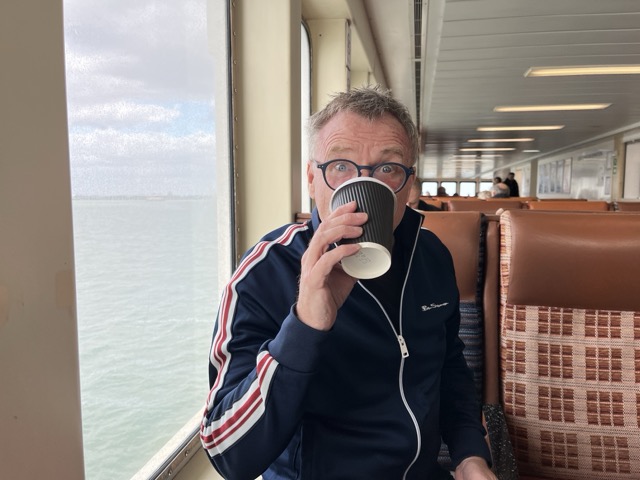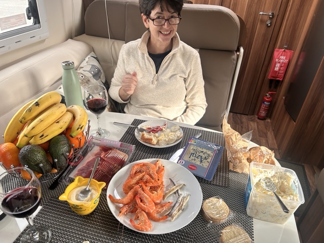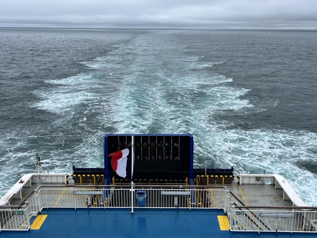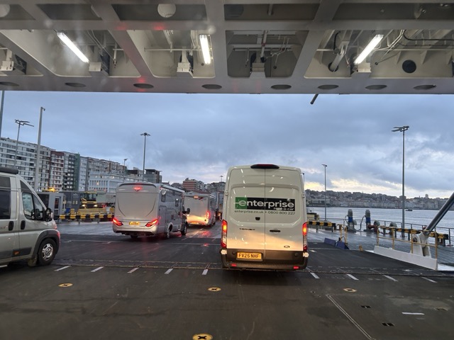 We find a nice spot near the port and in situ, ready for our ferry and have a very civilised dinner before driving the 500m to the port next door. There are lots of other motorhomes here, so we aren’t the only ones risking any kind of fuel crisis that might come our way.