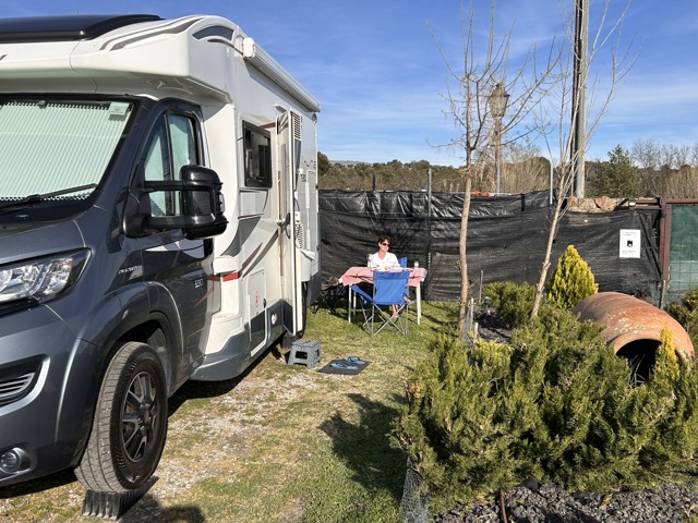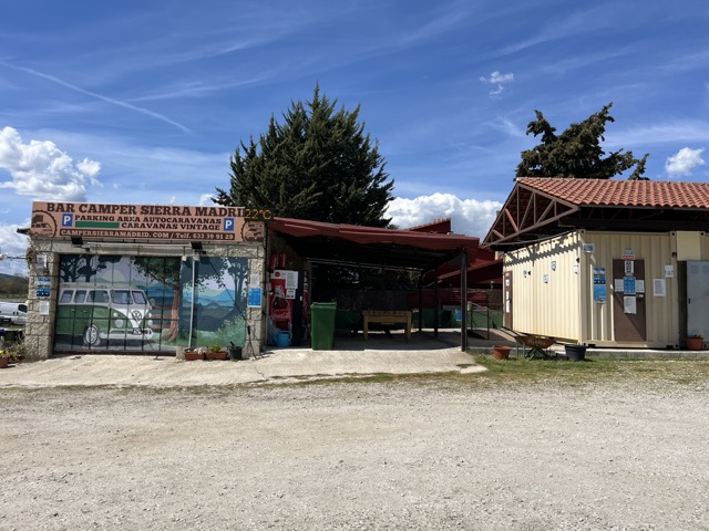 We are about 70 km north of Madrid, and H has found us a nice, quirky campsite/stop. It’s not far from the town of Buitrago del Lozoya. The guy who runs it is so friendly and charming.