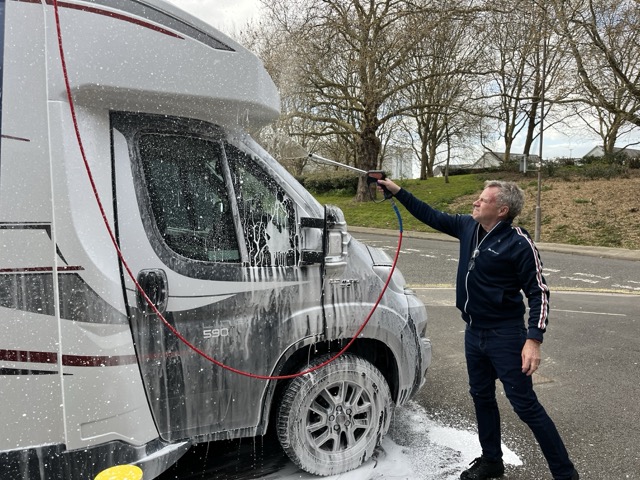 The ferry leaves tonight at 9:45pm and takes just over 32 hours to arrive in Santander. We prepared most of the van yesterday, so today we just have to pop the bikes on the back and add some food. We’ve left lots of time between our Isle of Wight ferry and the ferry from Portsmouth to Spain, as we don’t quite trust Wightlink not to cancel a few ferries for various reasons; the usual excuse is that the sea is wet and moves a bit! In the event, though, they managed to put us on an earlier ferry because of issues they had in the earlier part of the day. (See what we mean. If they have to go anywhere near water, they panic, and it all goes wrong!) This means that we have plenty of time to kill in Portsmouth. First, Jess needs a wash and her tyres checked.