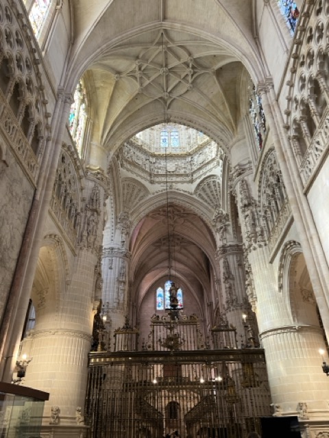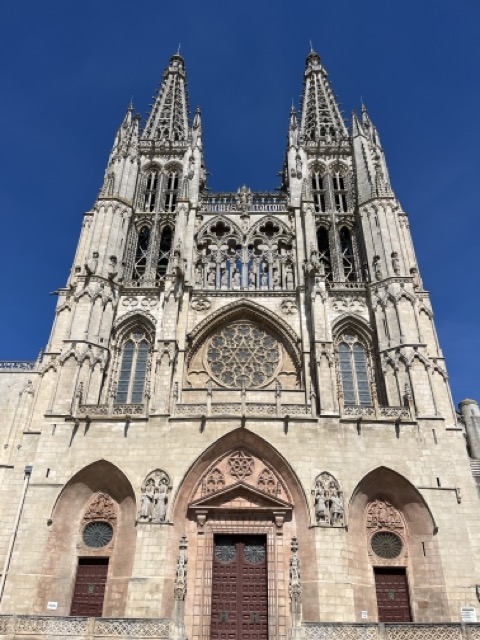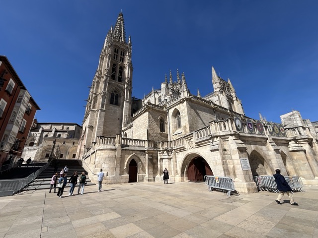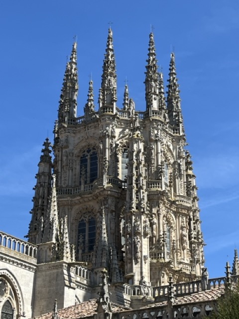 H has found us another free night’s stop in the city of Burgos. We have done well with free stops so far in Spain. They are well-equipped here and make it easy for motorhoming. We are soon parked up, and we quickly set off for the bus into town, which has an elaborate cathedral. We shall see.