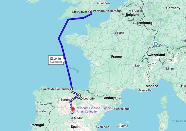 Week 1. 30th March – 5th April 2026. Home to Buitrago del Lozoya, Spain – 1053 miles (mainly at sea!)